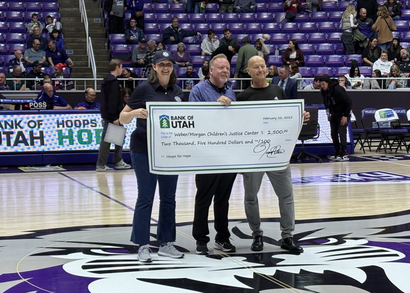 This basketball season, Bank of Utah supported the Weber-Morgan Children’s Justice Center and The Family Place Utah through its Hoops for Hope program. Each nonprofit received a $2,500 donation, with check presentations held during basketball games at Weber State (Weber-Morgan Children’s Justice Center) and Utah State (The Family Place Utah).